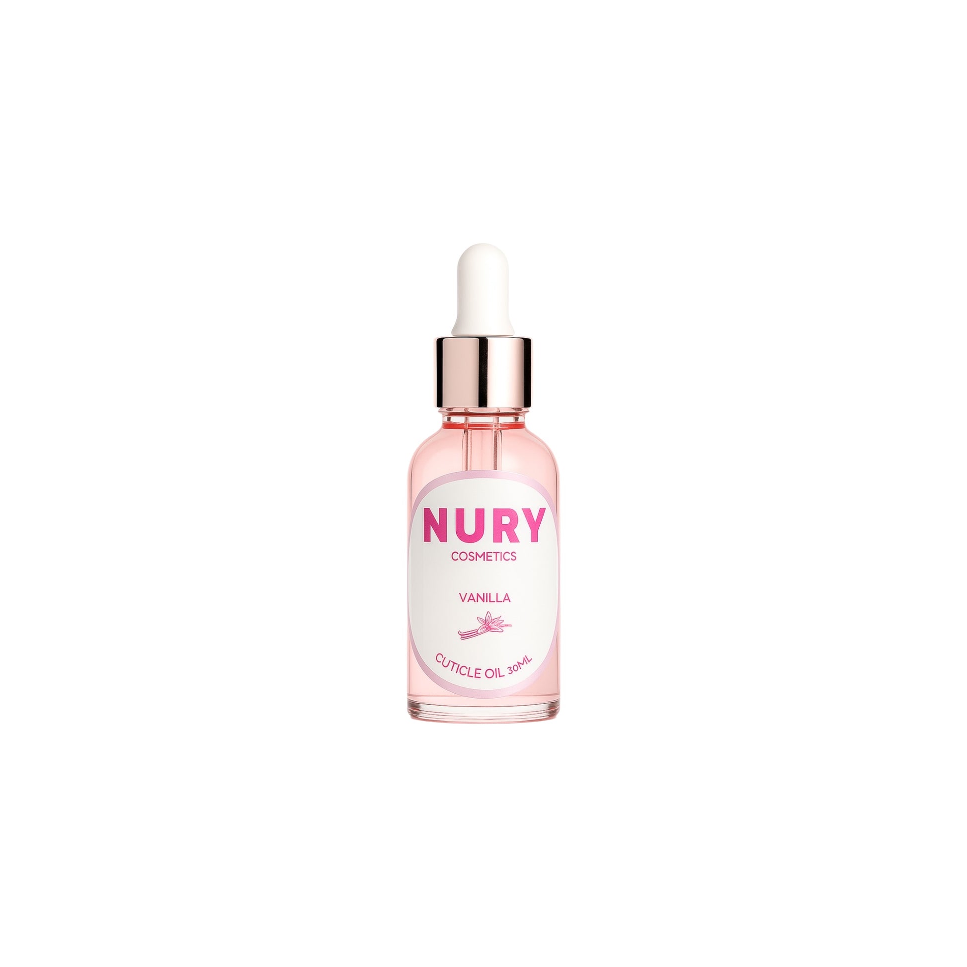 Óleo de Cutículas em embalagem de 30ml, conta gotas, com fragrância a baunilha.